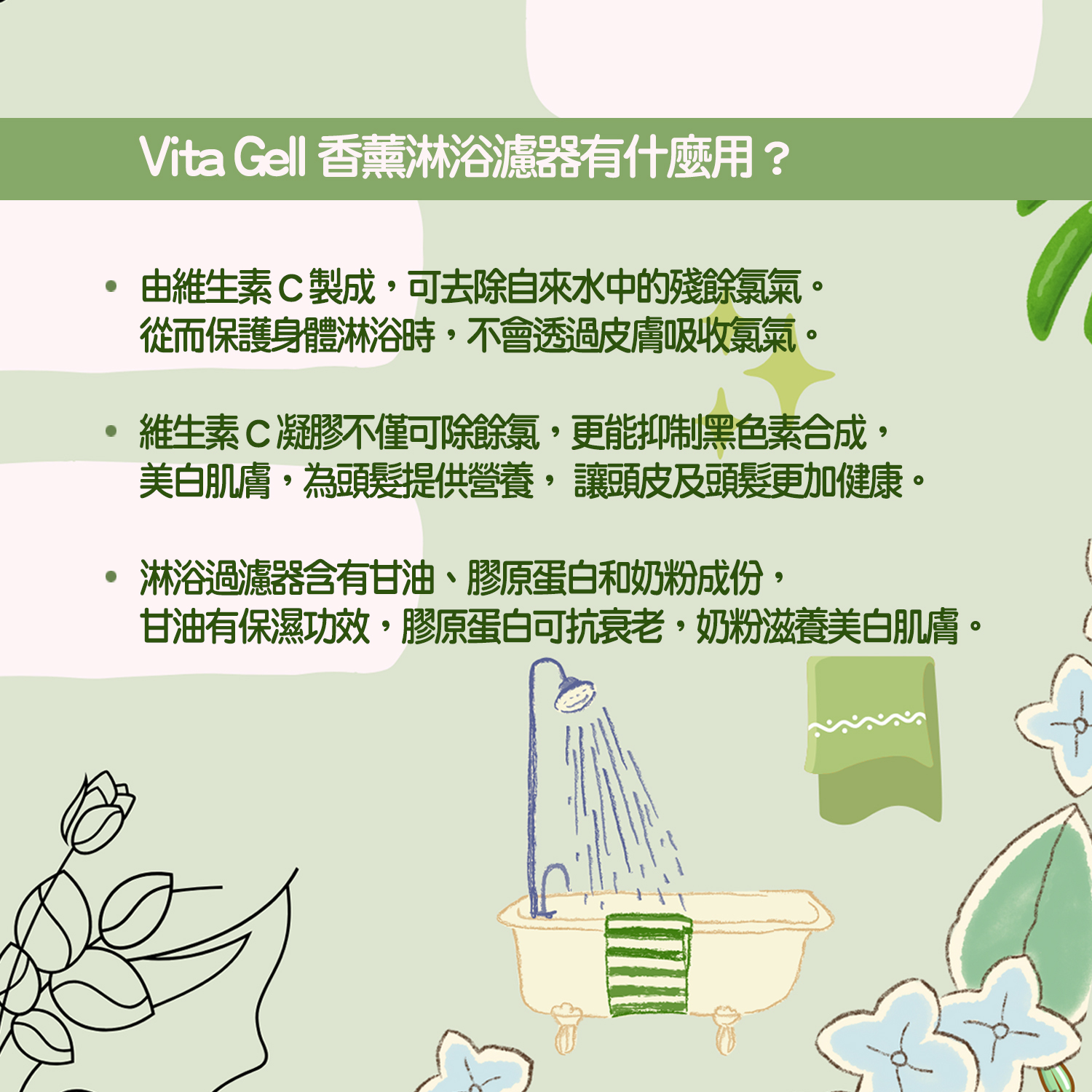 4. 維生素C凝膠 - 可以去除餘氯,抑制黑色素合成,使肌膚更加美白; 為頭髮提供營養,令頭皮和頭髮更健康。